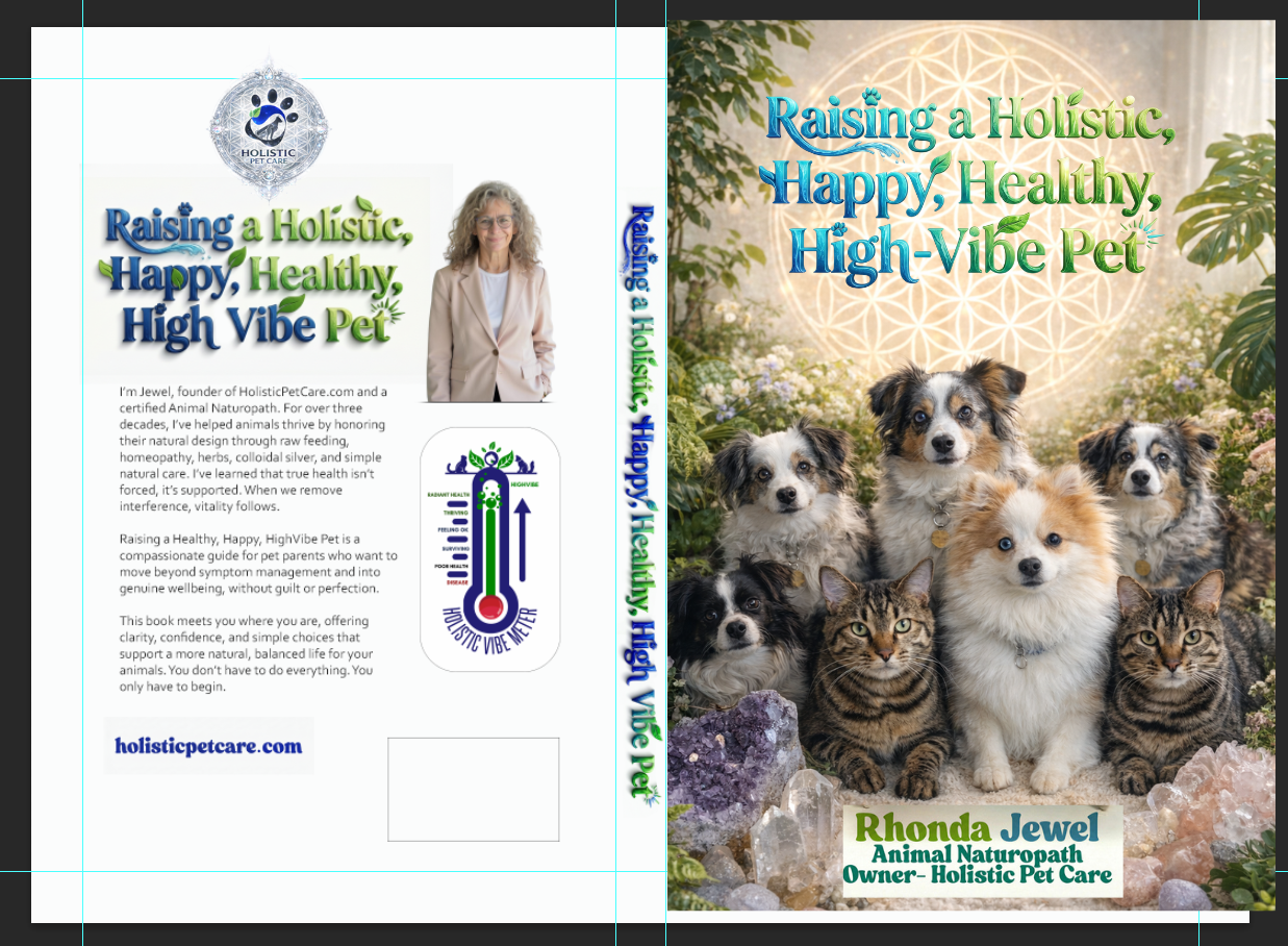 How to Raise A Holistic, Happy, Healthy, HighVibe Pet is a compassionate guide for pet parents who want to do the best they can with what they have. It’s about navigating modern life with awareness and intention. About understanding how food, stress, environment, emotions, and energy shape our animals’ wellbeing. And about making choices, big or small, that support life rather than drain it.